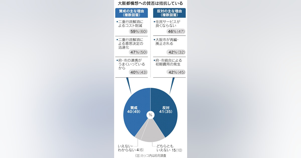 都構想に賛成と答えた人は40%、反対は41%で拮抗した。